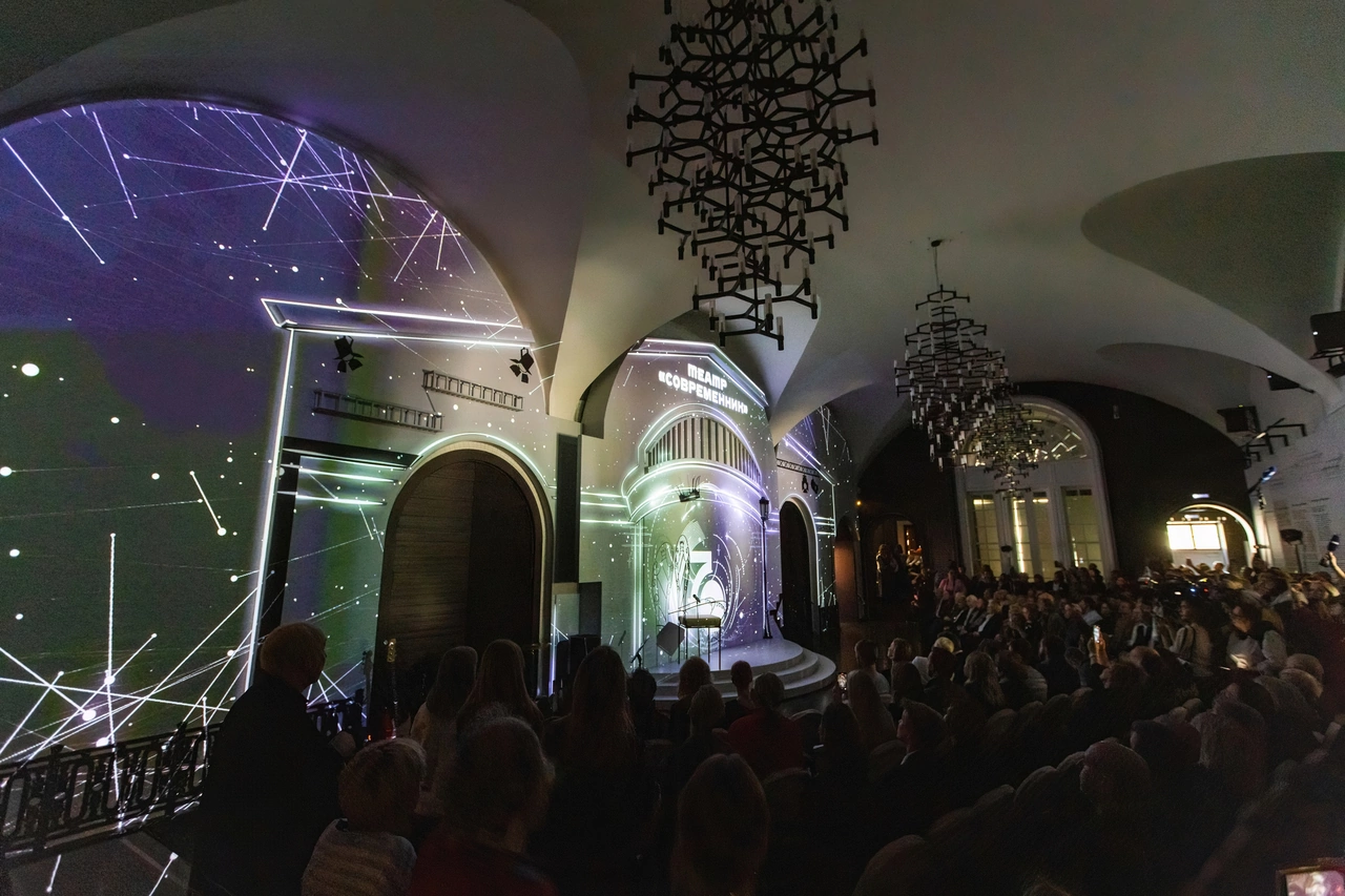 ВИДЕОМЭППИНГ-ПРОЕКЦИЯ НА ФАСАДЕ ЗДАНИЯ ТЕАТРА. ЭТОТ ПРОЕКТ, СОЗДАННЫЙ ВМЕСТЕ С КОМПАНИЕЙ «ГОРОД СВЕТА», — ОБРАЩЕНИЕ «СОВРЕМЕННИКА» К ГОРОДУ, ВОЗМОЖНОСТЬ ПОГРУЗИТЬСЯ В АТМОСФЕРУ ЮБИЛЕЙНОГО СЕЗОНА ДЛЯ КАЖДОГО, КТО ПРОХОДИТ ПО ЧИСТОПРУДНОМУ БУЛЬВАРУ.